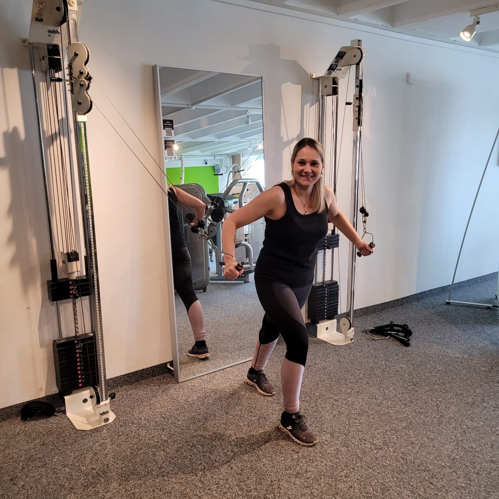 „Ich bin Nadine, 38 Jahre alt und mittlerweile Mama von 3 Kids. Ich trainiere im frau+figur in Waldsee vom 1. Tag an. Ich hab mich dafür entschieden, weil es ein reines Frauenstudio ist, nahe am Wohnort und weil mir das Konzept mit der kurzen Trainingszeit gefällt. Das MIA-Konzept macht es mir, trotz Kinder, immer möglich zu trainieren. Ich schaffe damit einen Ausgleich zum Alltag und schalte von zu Hause ab, um neue Kraft und Energie zu sammeln. Ich bin seit Tag 1 dabei, habe ein wenig Gewicht verloren und einen trainierten Body erreicht.